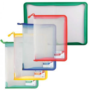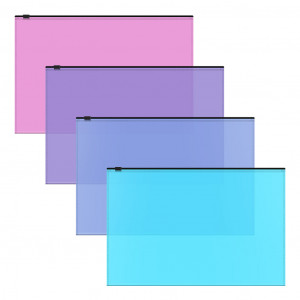 Папка на молнии пластиковая BRAUBERG "Диагональ", А4, 325х230 мм, прозрачная, молния ассорти, 224052