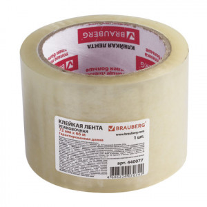 Клейкая лента 72 мм х 66 м, упаковочная, BRAUBERG, прозрачная, гарантированная длина, 45 мкм, 440077