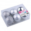 - Шары елочные ЗОЛОТАЯ СКАЗКА, набор 6 шт., пластик, 8 см, серебристые (глянец, матовый, глиттер), 590876